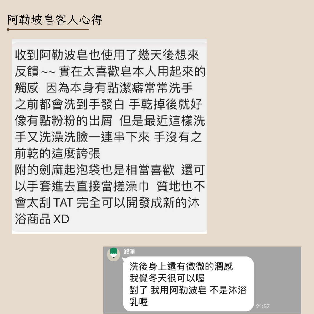 泡沫極致細緻綿密,清洗後肌膚不會有緊繃感,反而能感受到來自橄欖油的潤澤呵護。氣味純粹,帶有天然的皂香與淡淡的草本氣息,不含任何人工香精,保留最真實的自然風味。由於配方高度滋潤,油性肌膚不建議使用,以免造成過度滋養的感覺。