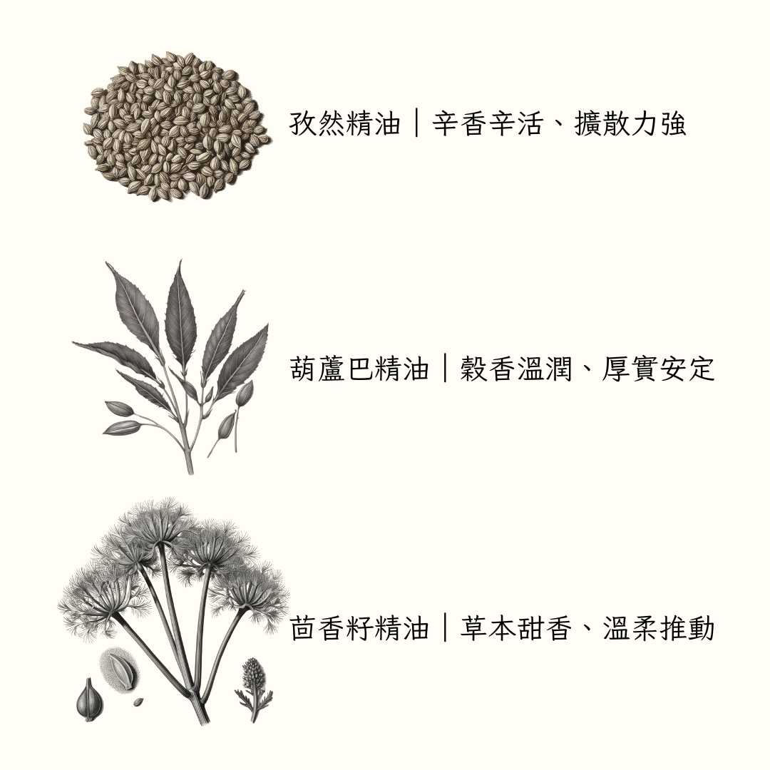 這是一款兼具結構支持與循環推動的暖感型複方油,氣味飽滿圓潤,適合調整肌膚節奏與氣機流動。